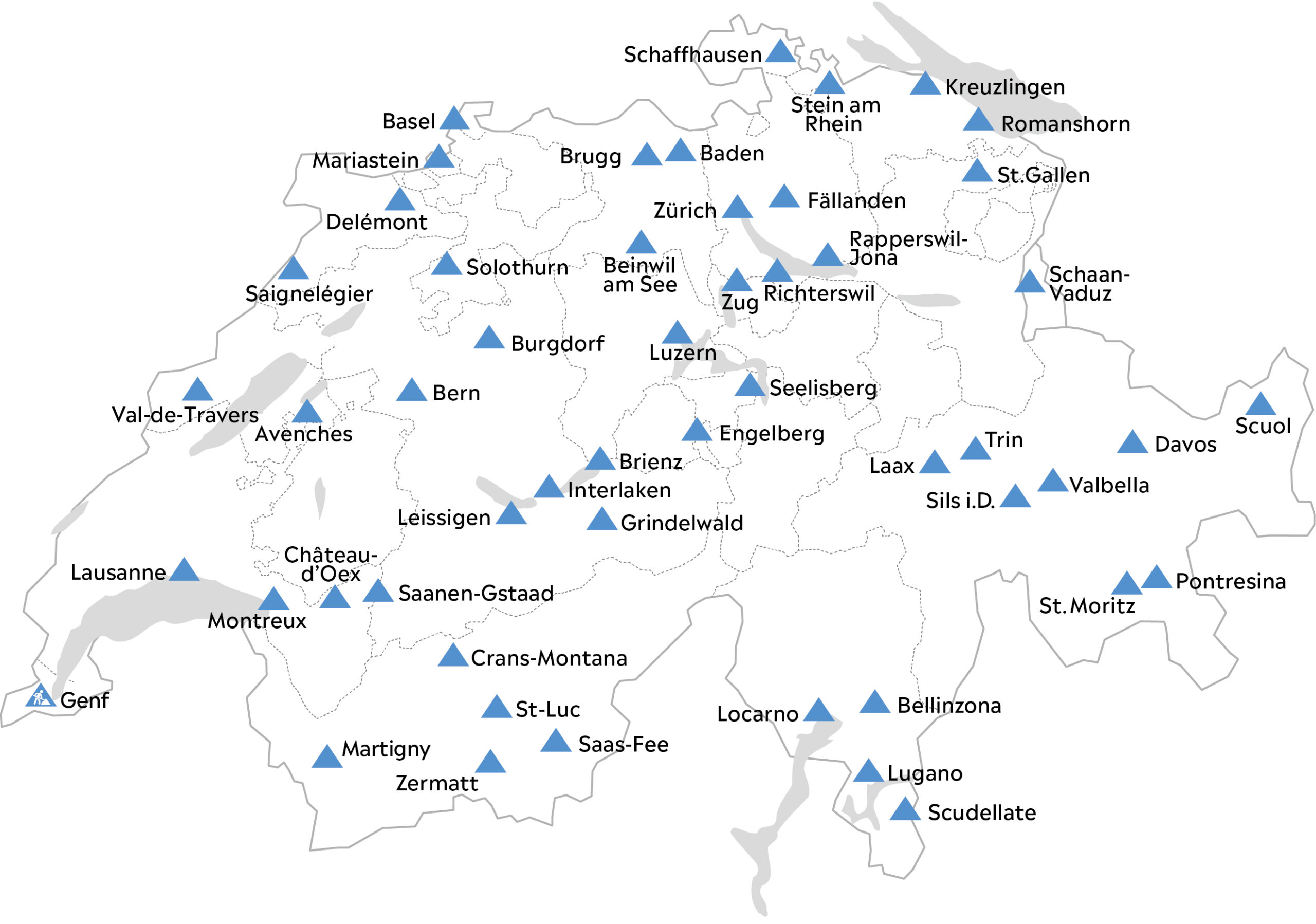 Netzwerkkarte der Schweizer Jugendherbergen